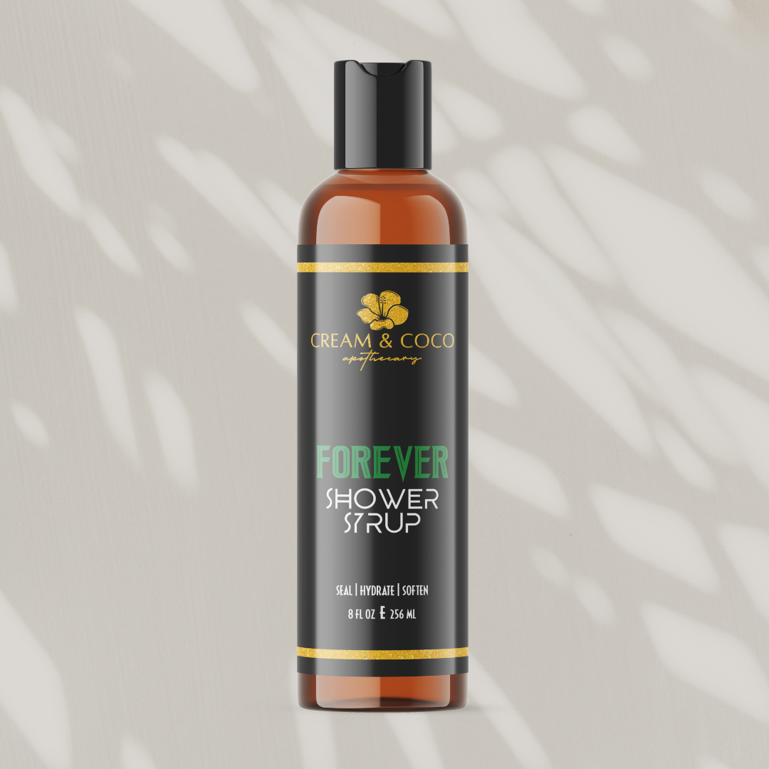 The shower syrup is a sweet, creamy confection of authentic African black soap to clear blemishes and soften. Bamboo charcoal adds detoxifying benefits to purify the skin & hair. The syrup is blended with green tea, ginger & amla, (Indian gooseberry) a potent Ayurvedic herb that is very rich in antioxidants. It can be used as a blemish clearing face cleanser, a shower soap or as a shampoo. African black soap when liquefied can have a cloudy or chunky appearance after settling. This is completely normal. We do not filter out the soap solids in our shower syrup to preserve authenticity & exfoliating properties. Simply shake the bottle before use.