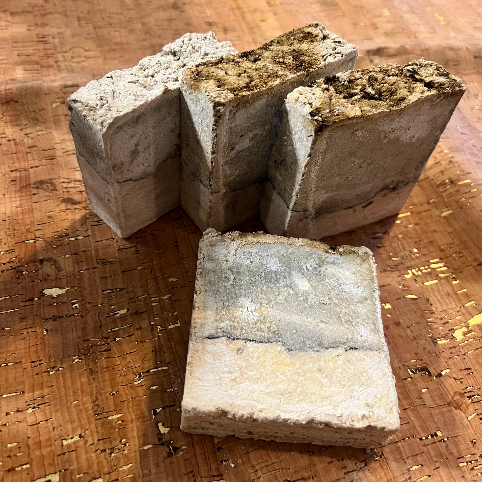 This limited batch came out with a more rustic finish than our usual silky bars. It's a little firmer, a little more old world apothecary, and carries that handcrafted charm in every edge. The ingredients and cleansing power are exactly the same, just with a harder cure that makes the bar longer lasting and much less creamy than our typical batch. Because of the firmness, it's incredibly versatile. Use a clarifying shampoo bar, an everyday body bar, or even grate down for a clean, effective laundry soap. Same intention, same quality, just a different personality at a special price.